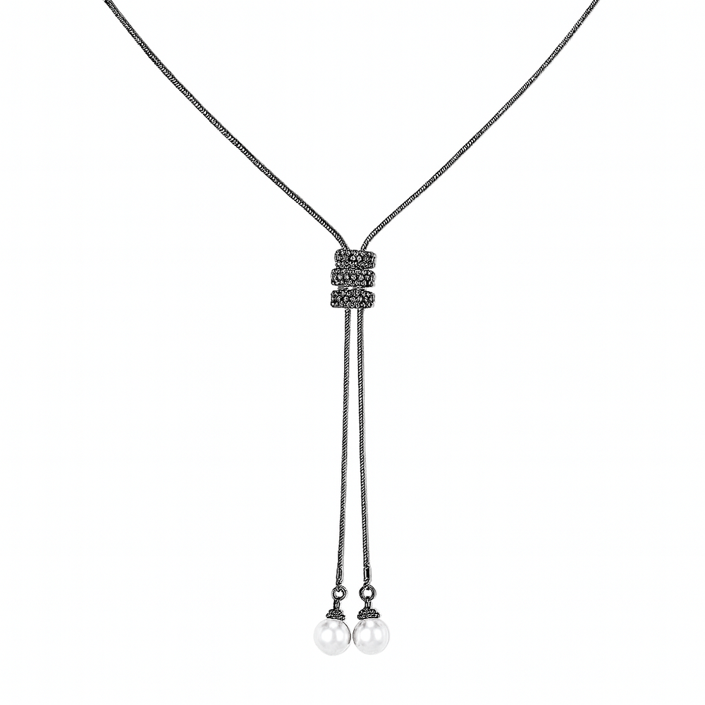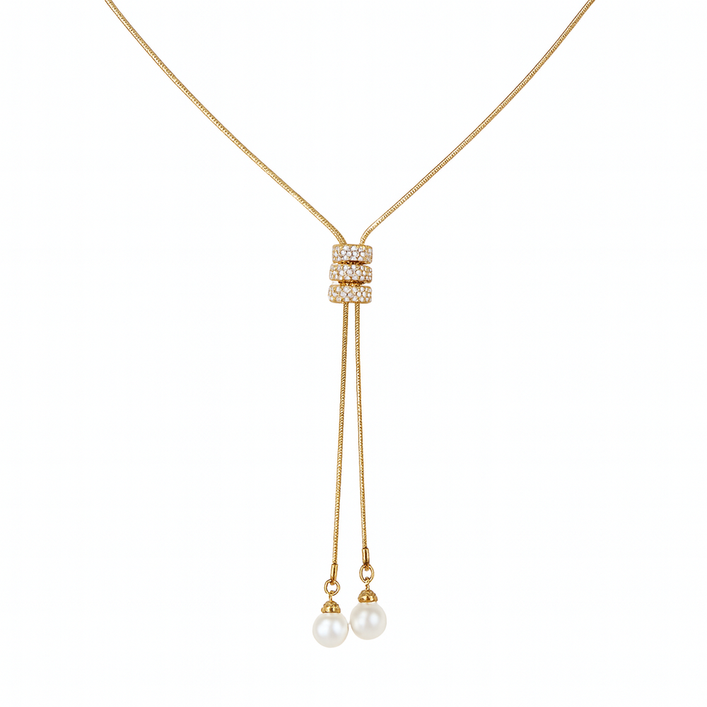 Add effortless elegance to any outfit with our stunning Zircon & Pearl Long Y-Lariat Necklace. Designed with a chic adjustable slider made of sparkling zircon-studded triple rings, this necklace features two lustrous pearls that drop gracefully along a sleek, elongated chain—perfect for sweater season, evening wear, or elevating everyday style.